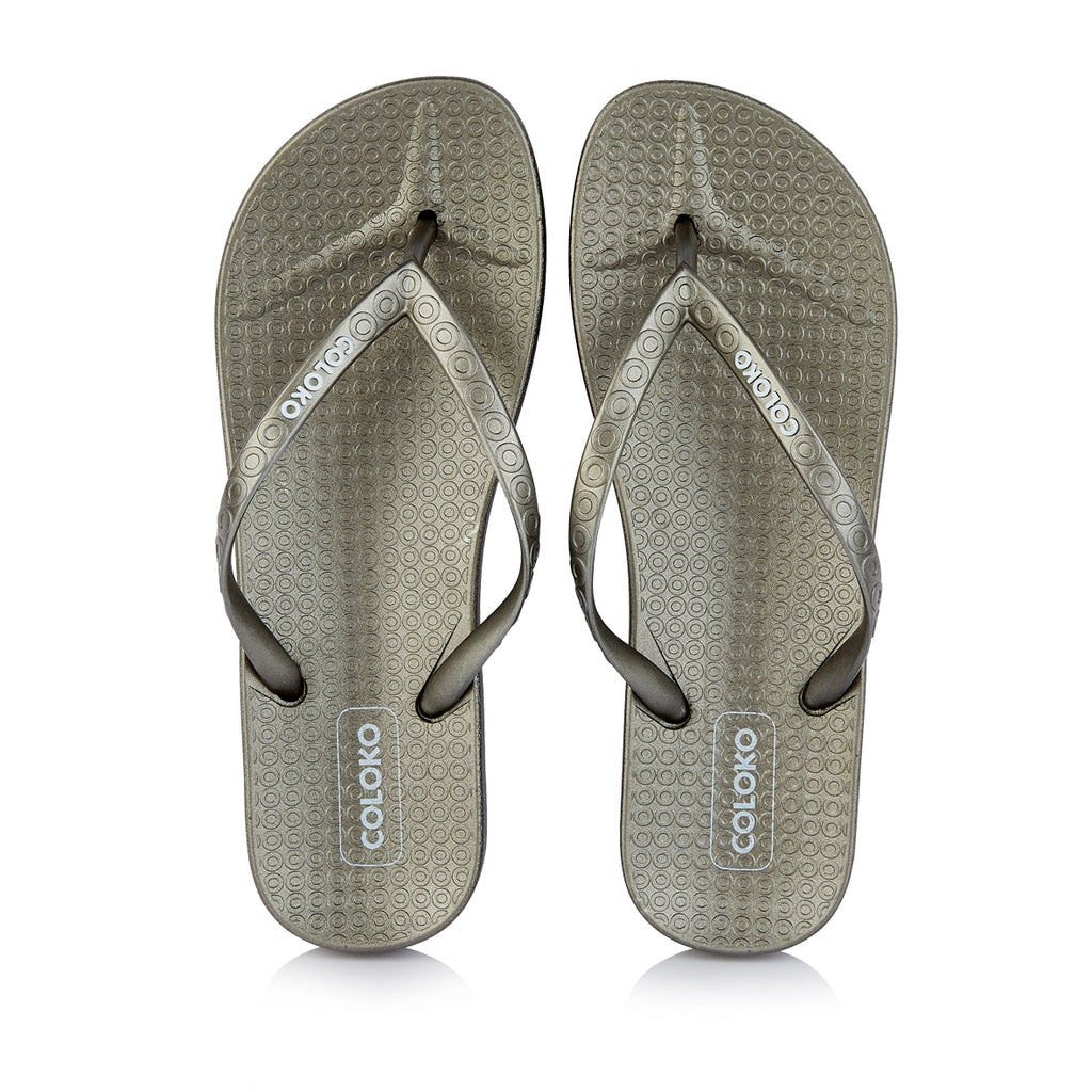 Coloko Lantana Pewter Grey Anatomic Metallic Flip Flops Sandals