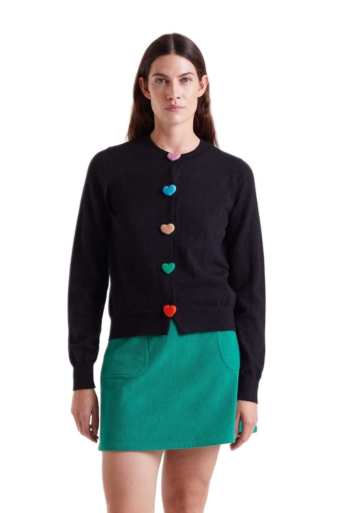 Compania Fantastica Black knitted cardigan with multicoloured heart buttons