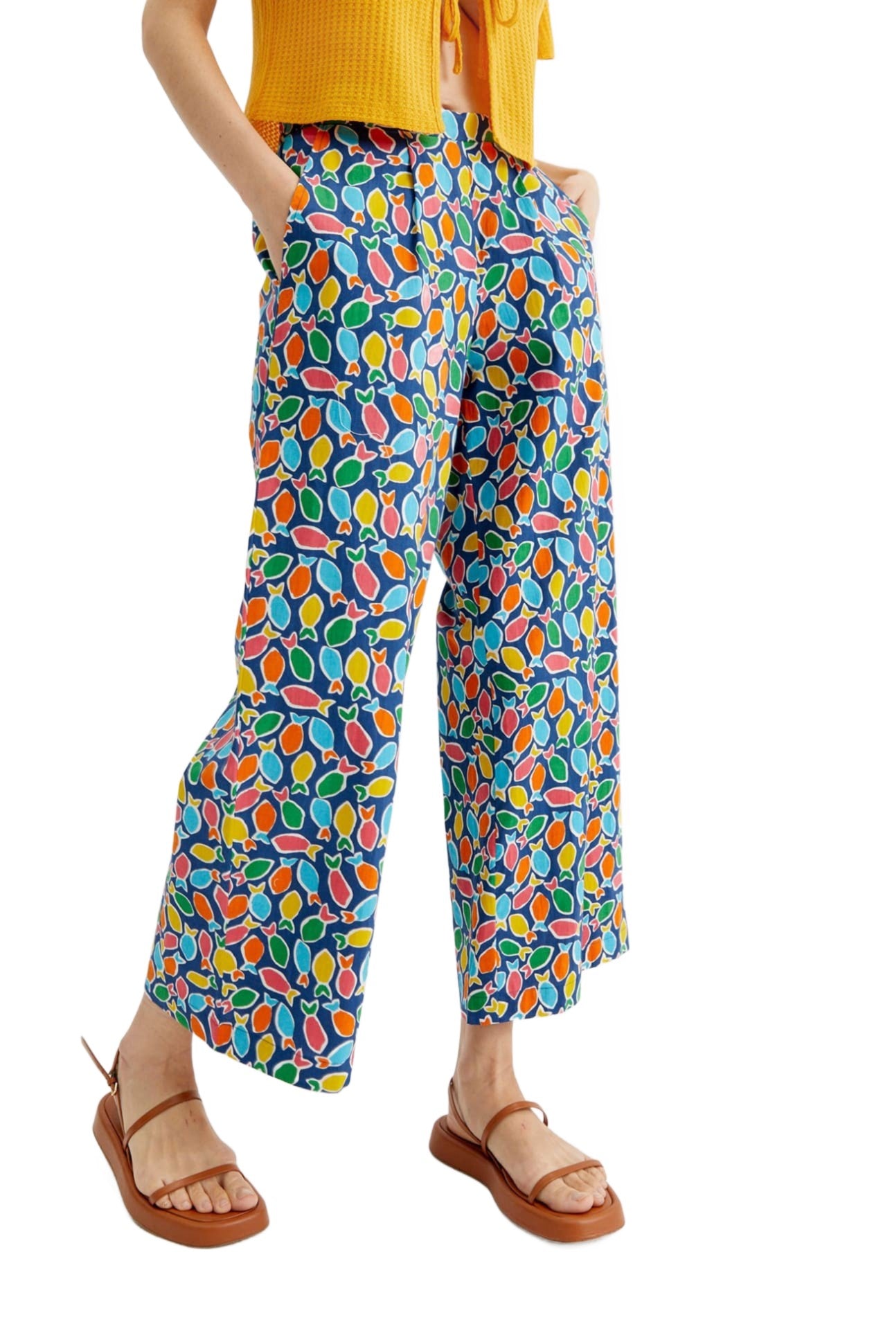 Compania Fantastica Multicolour Fish print wide-leg cropped trousers