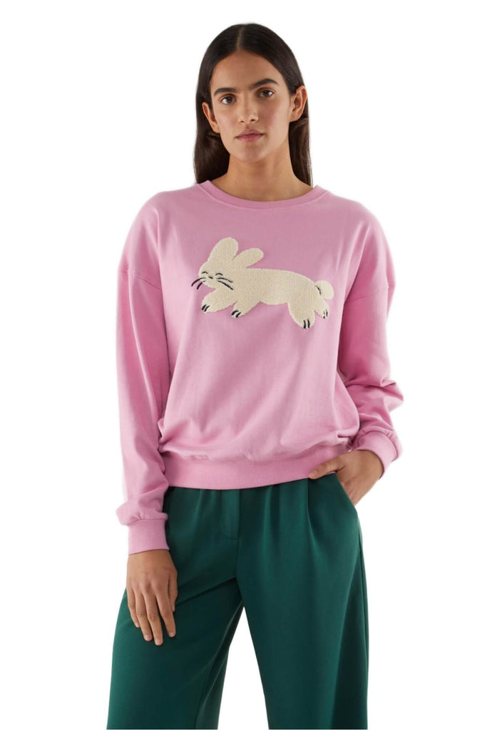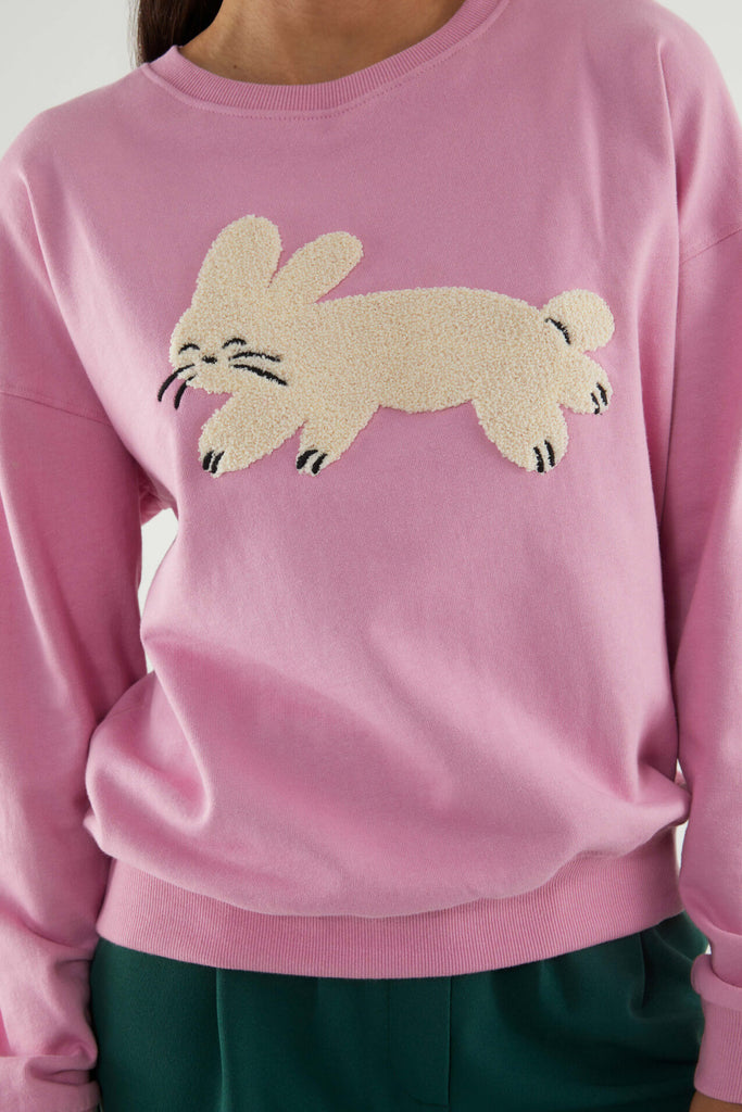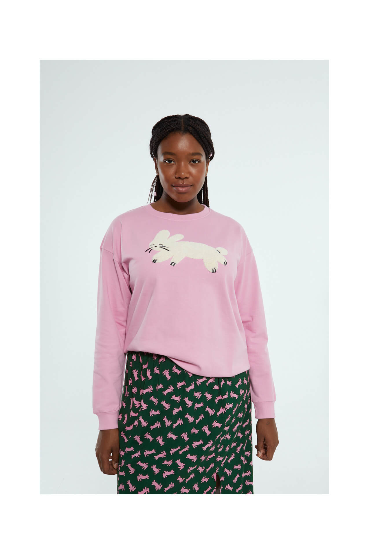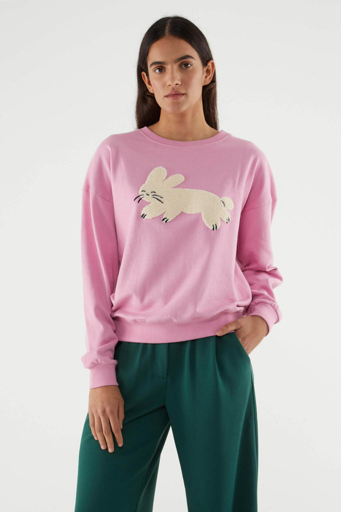 Compania Fantastica Pink Cotton sweatshirt with rabbit print