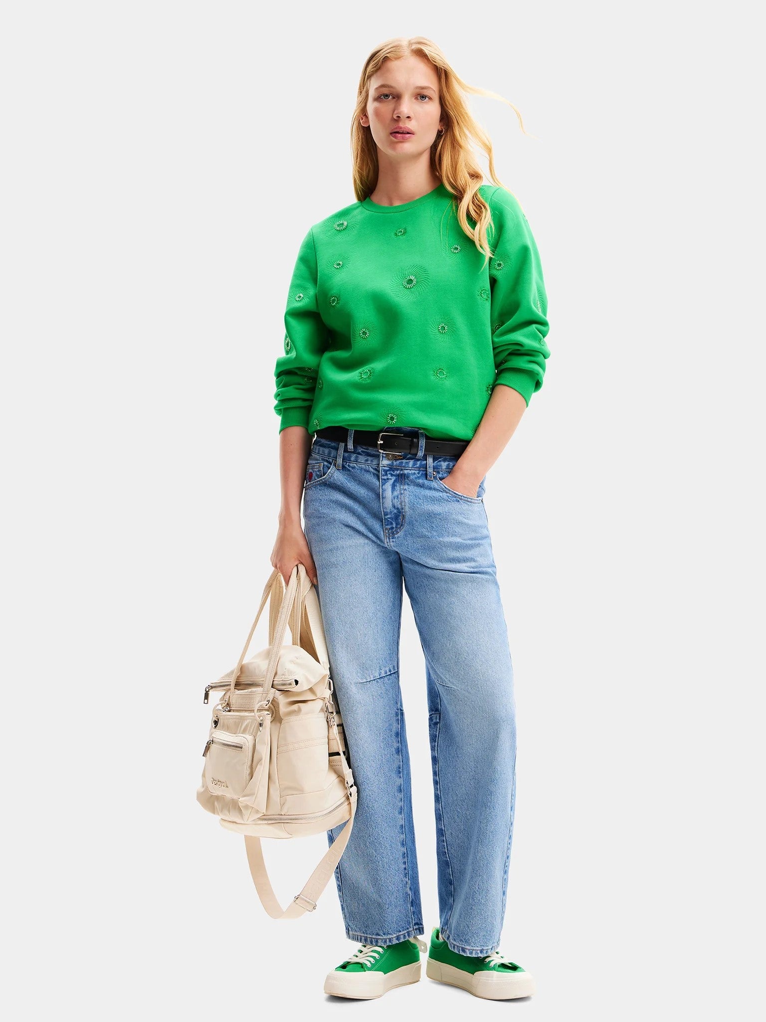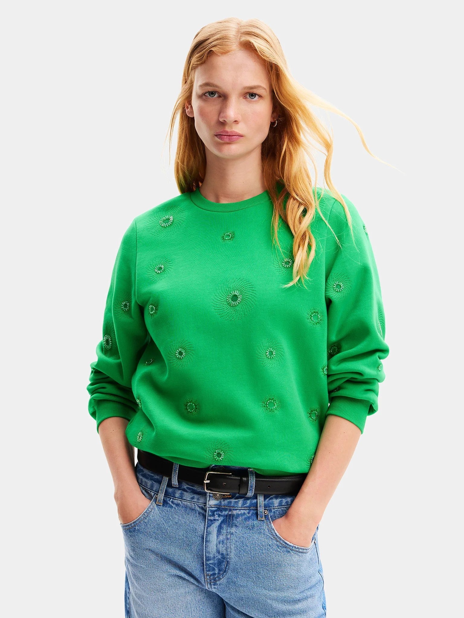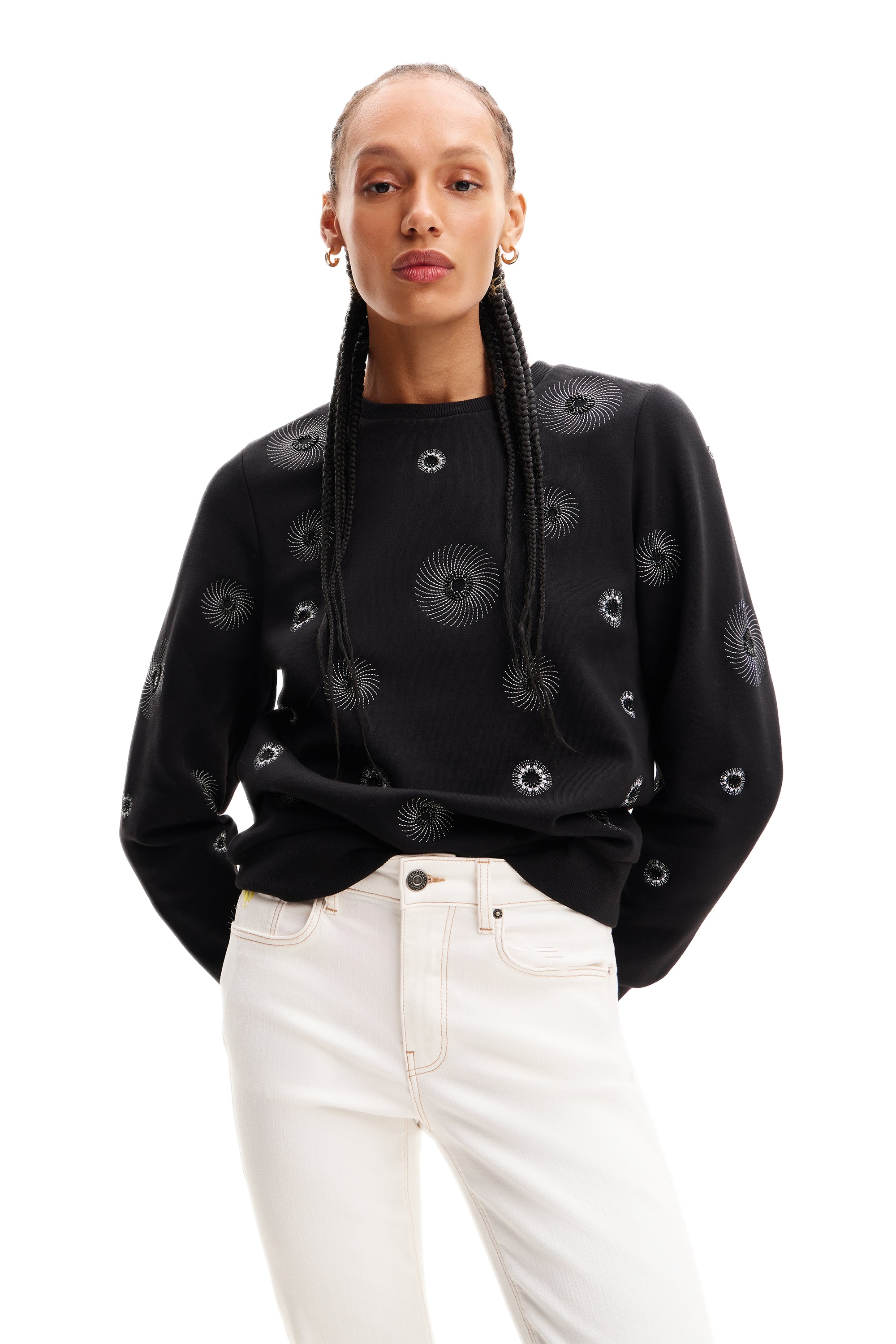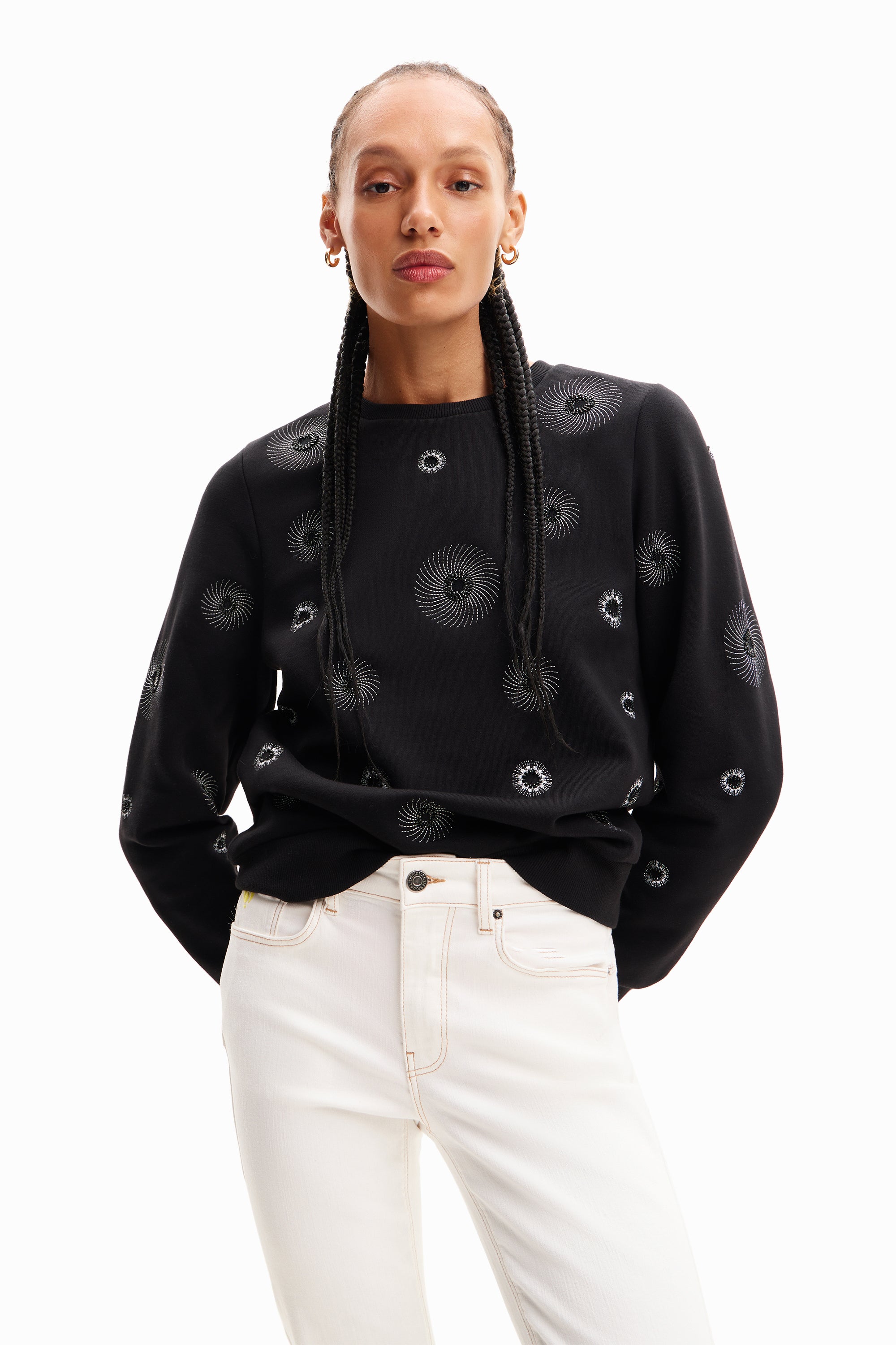 Desigual Joyta Sweater with Metallic Circle Embroidery 24SWSK07