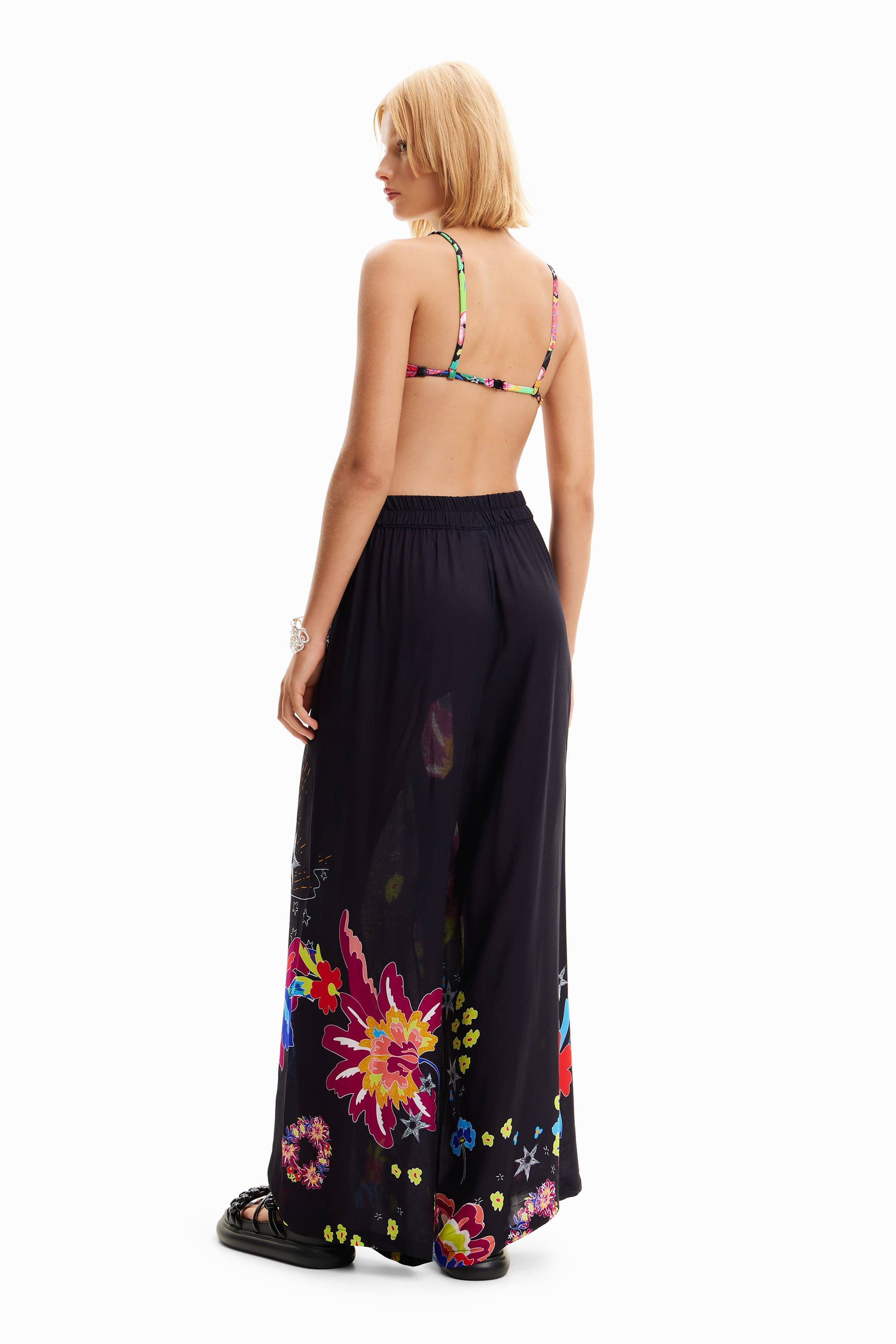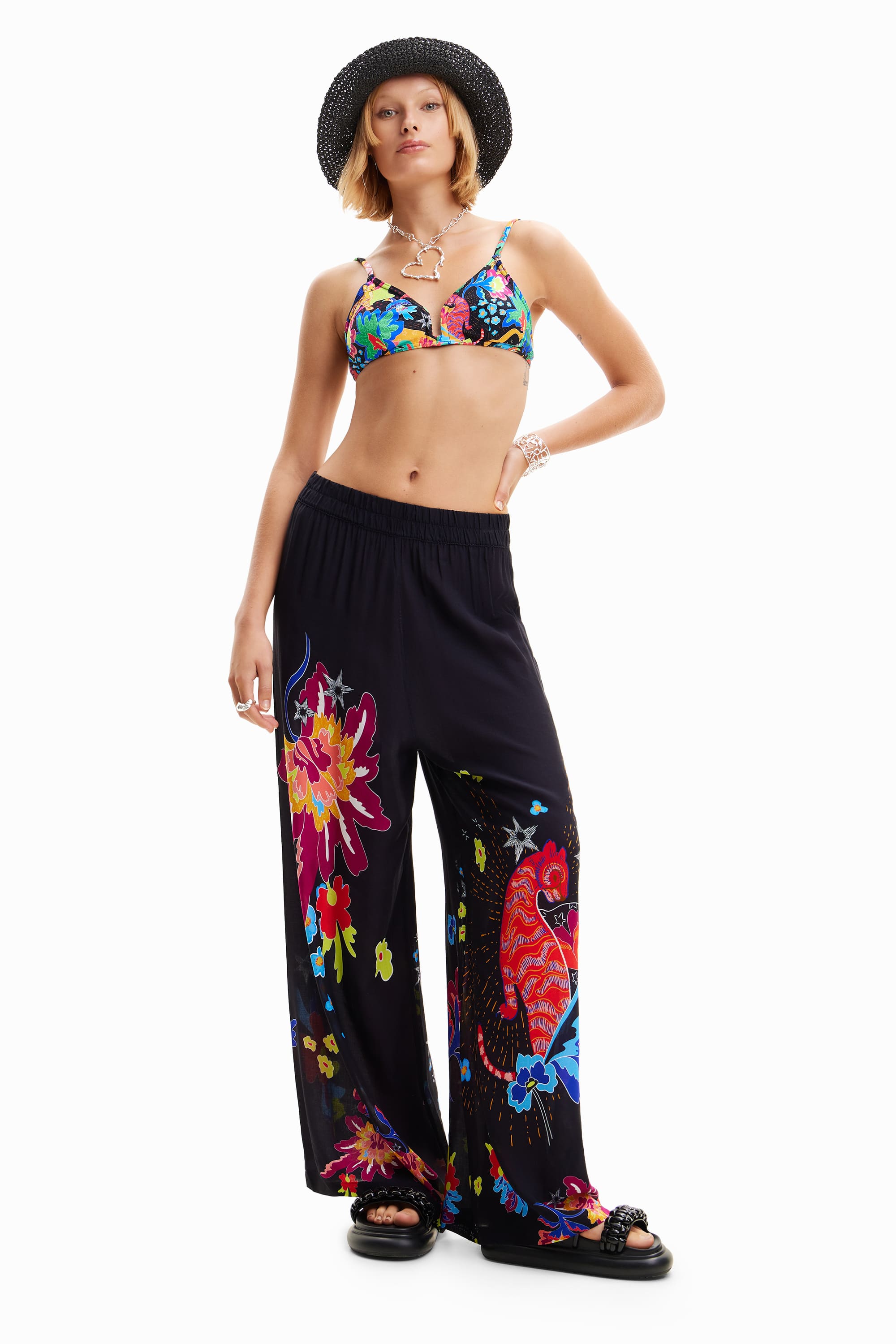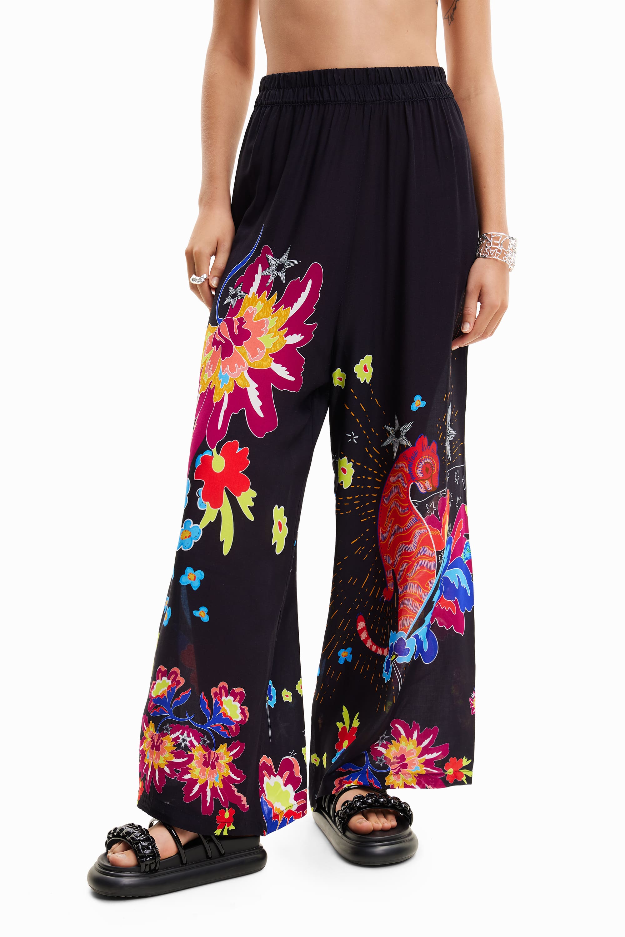 Desigual Junjly Wide leg palazzo pants 24SWMW05 Wide-leg trousers with an elasticated waist and lightweight viscose fabric featuring a multicolour print.