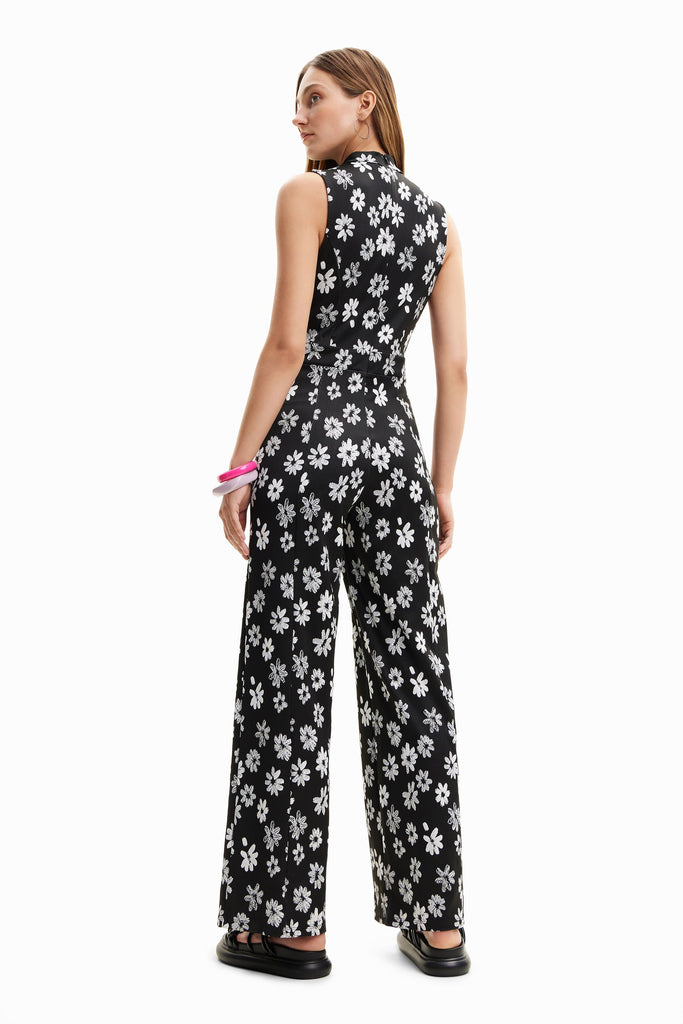 Desigual Lana Black & White Sleeveless Belted 1960s Jumpsuit 24SWPK06
