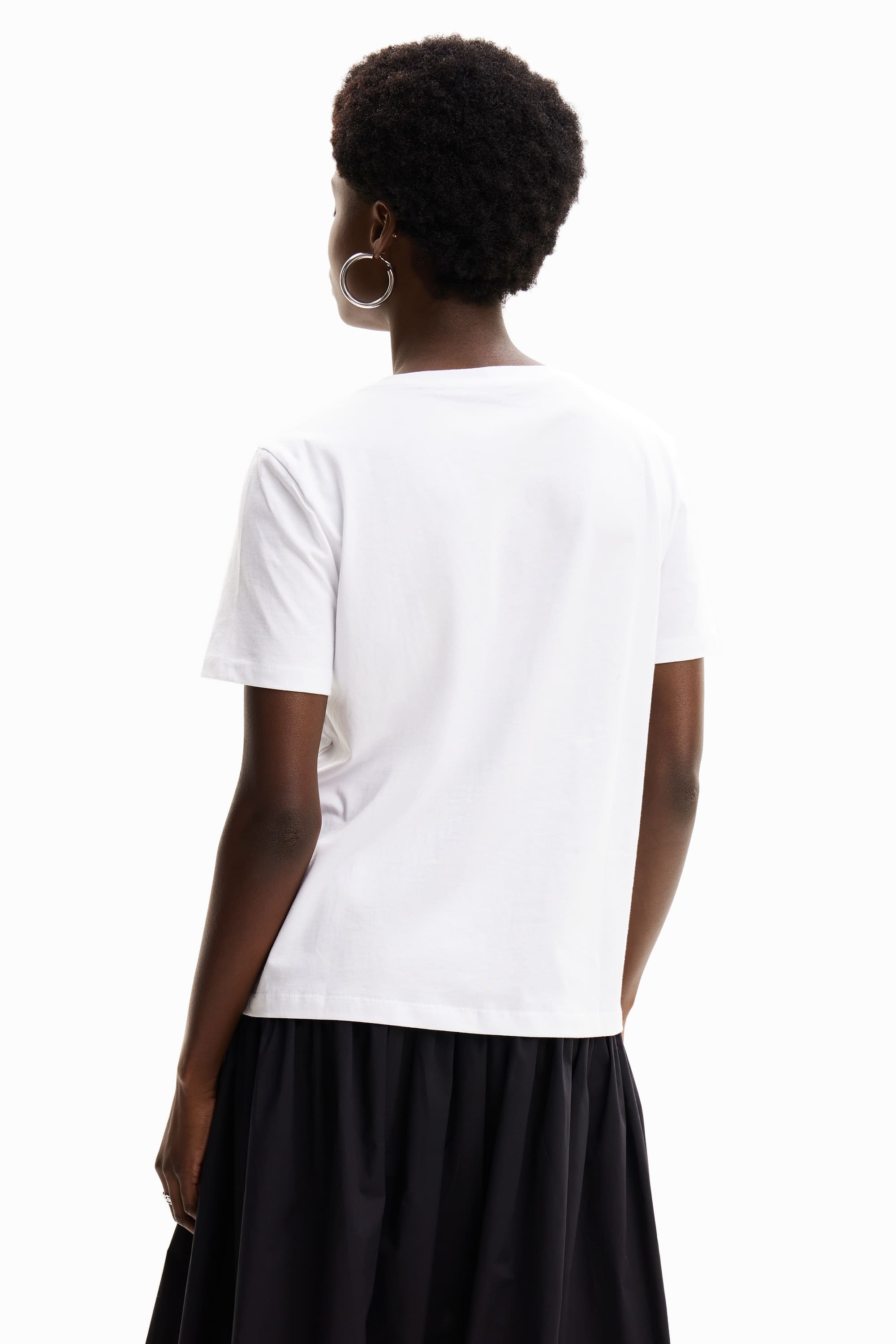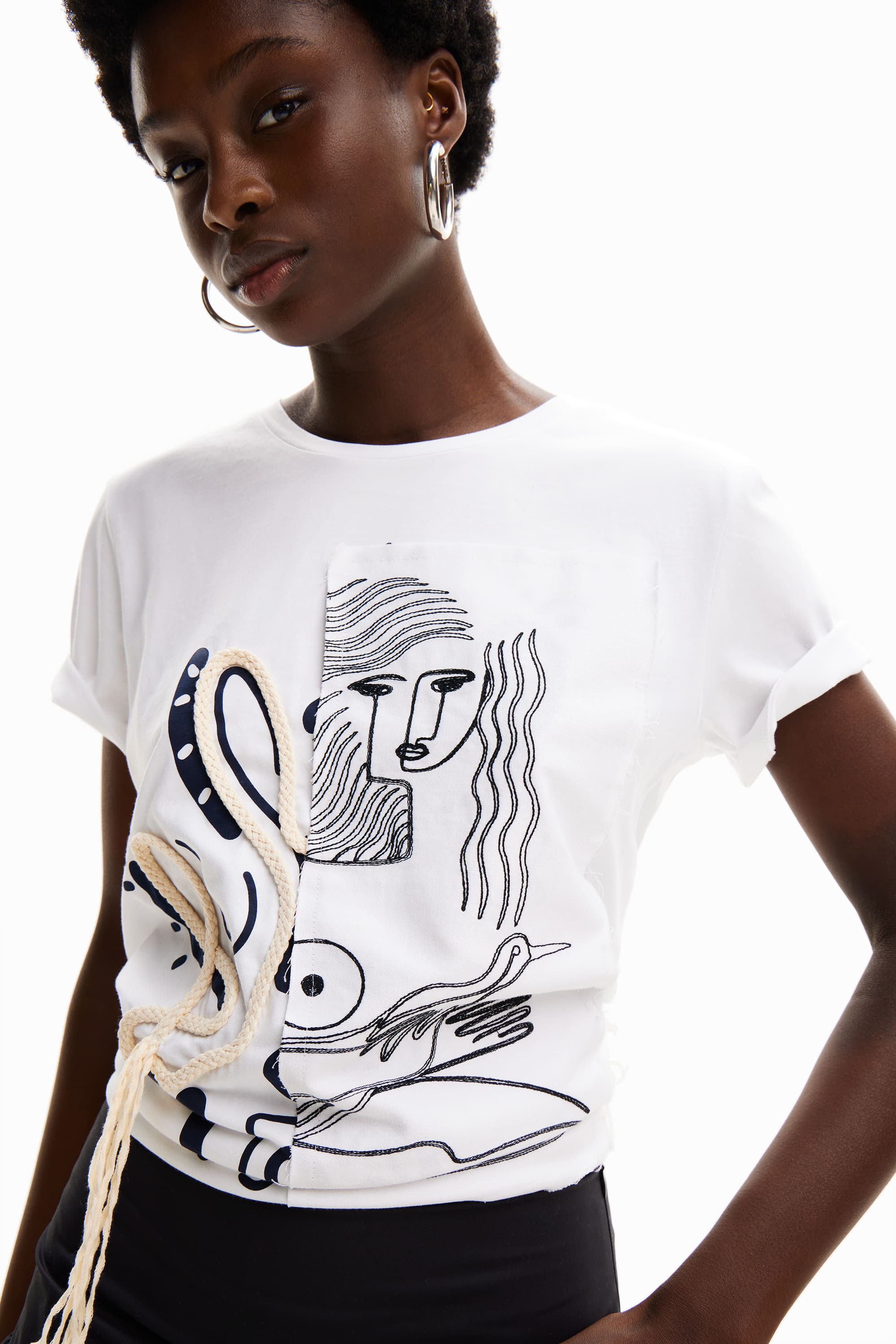 Desigual Tristan Tshirt 24SWTKB0 A loose short-sleeve T-shirt with a front illustration, patch and braided cord appliqués.