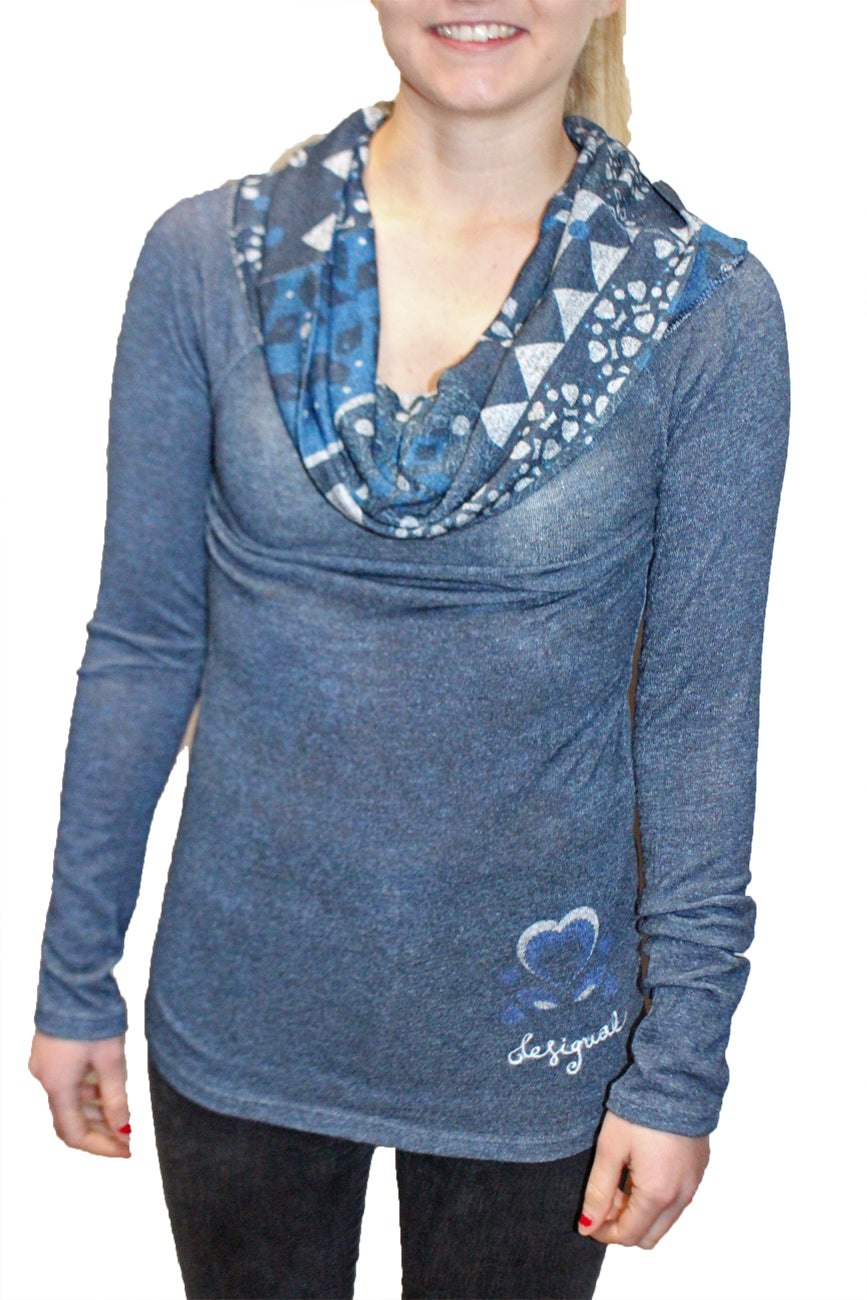 Gris Cowl Neck T-Shirt Desigual Style 67T25K3 - UK 8 (36 / XS / 26) / Blue is backordered and will ship as soon as it is back in stock.
