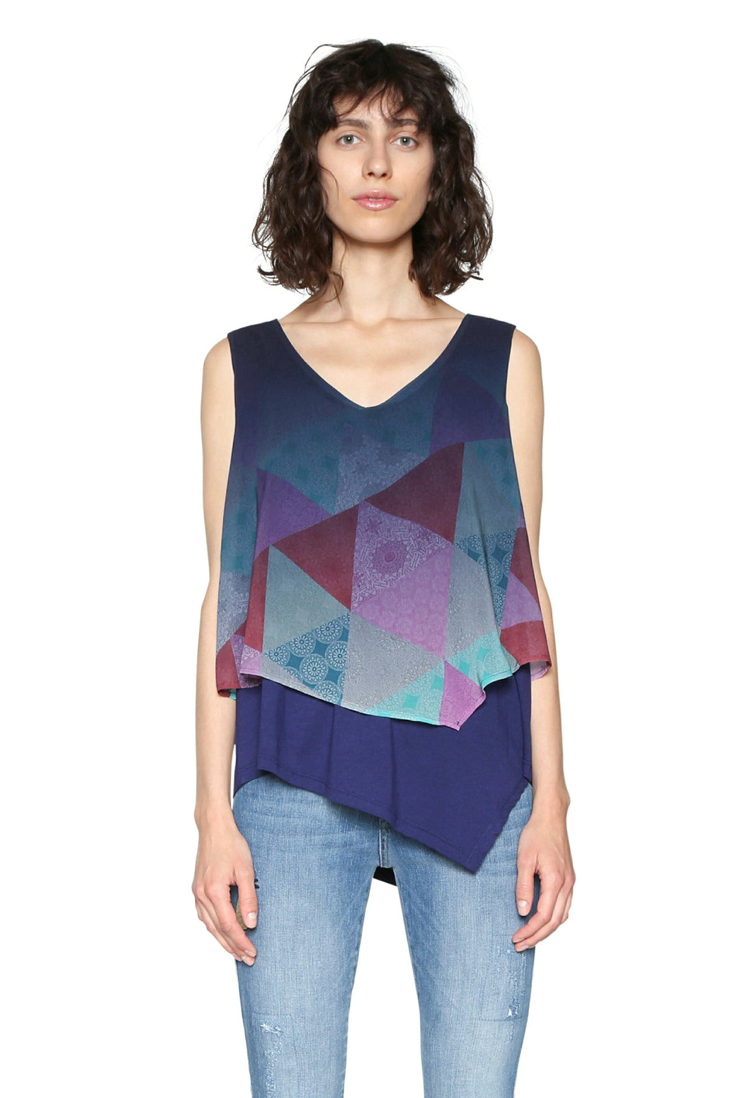Club de Blues Layered Sleeveless Blouse Desigual Style 18SWBWB8 - UK 8 (36 / XS / 26) / Blue is backordered and will ship as soon as it is back in stock.