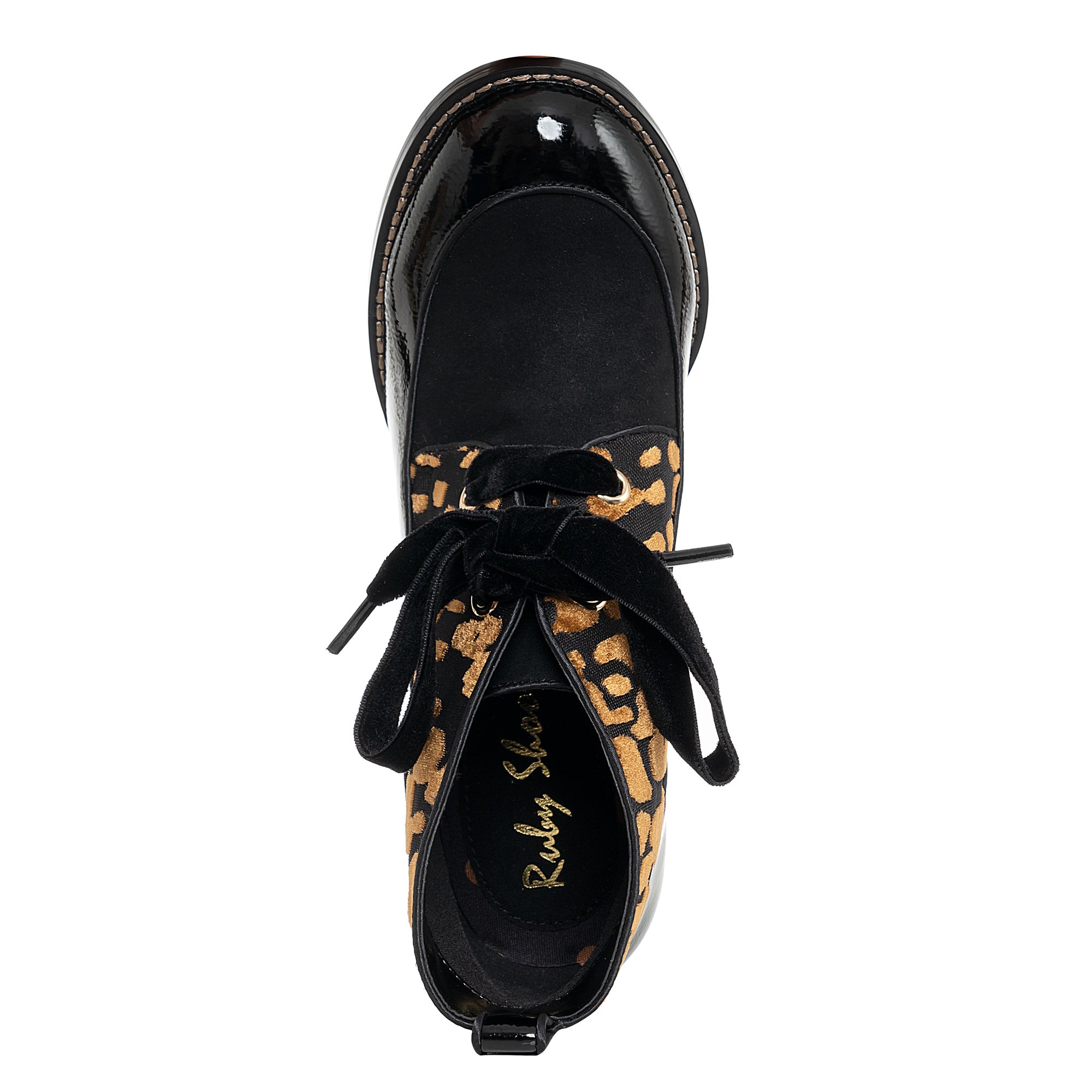 New this season, shoe-boot EMMA has a sturdy but flexible sole that combines with our comfort padding in a shoe you won't want to take off. In leather-look PU and rich satin ribbon laces, Ruby Shoo EMMA matches perfectly to bag style ALBERTA Upper: textile/other Lining: textile Sock: textile Sole: other Heel height: 80mm. Vegan Friendly