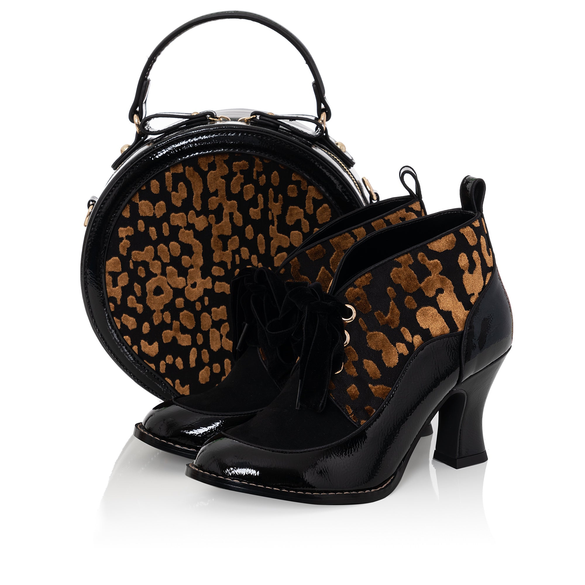 Emma Black & Gold Mid Heel Boot & Matching Alberta Bag by Ruby Shoo