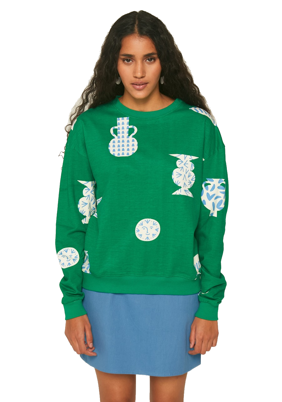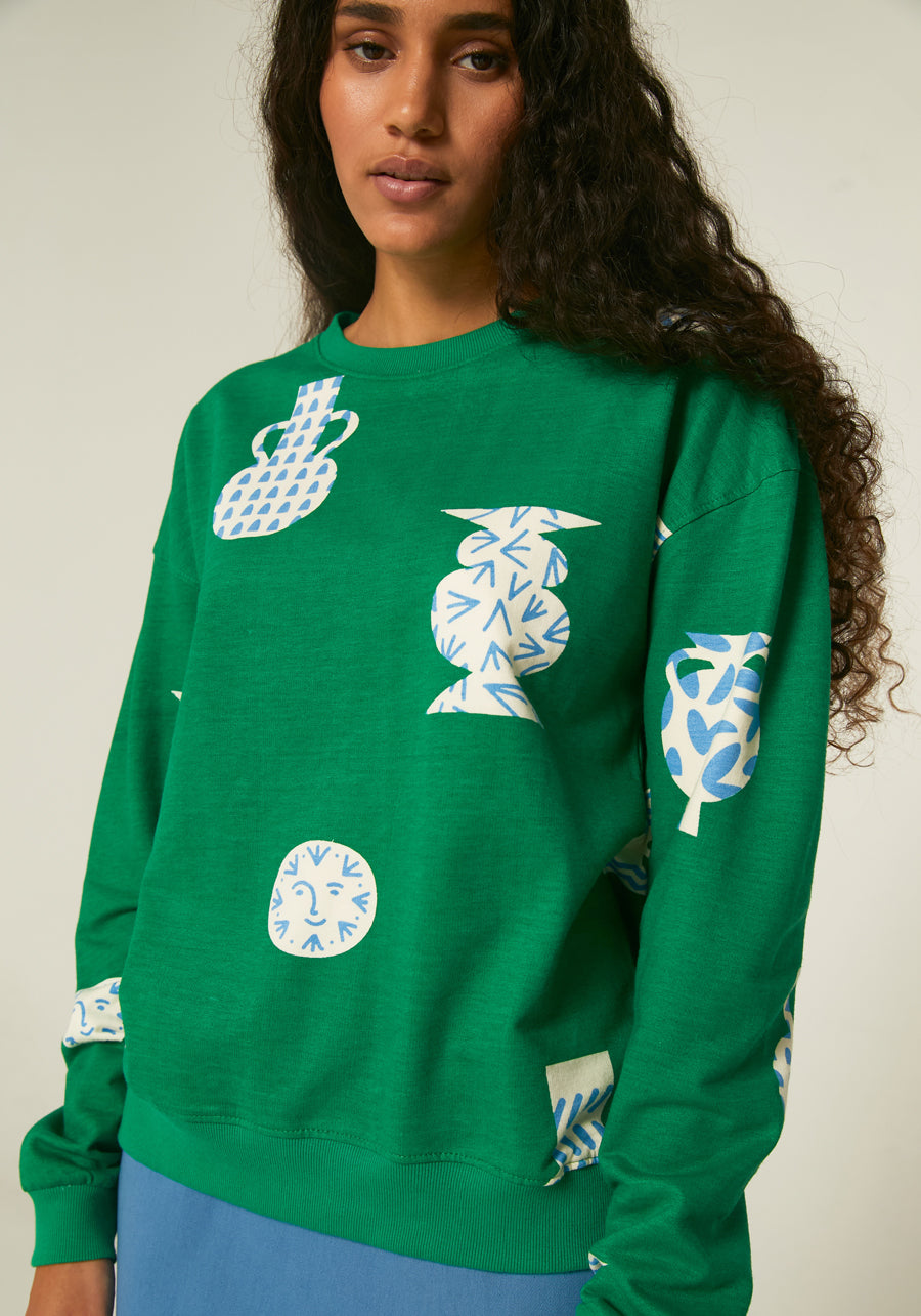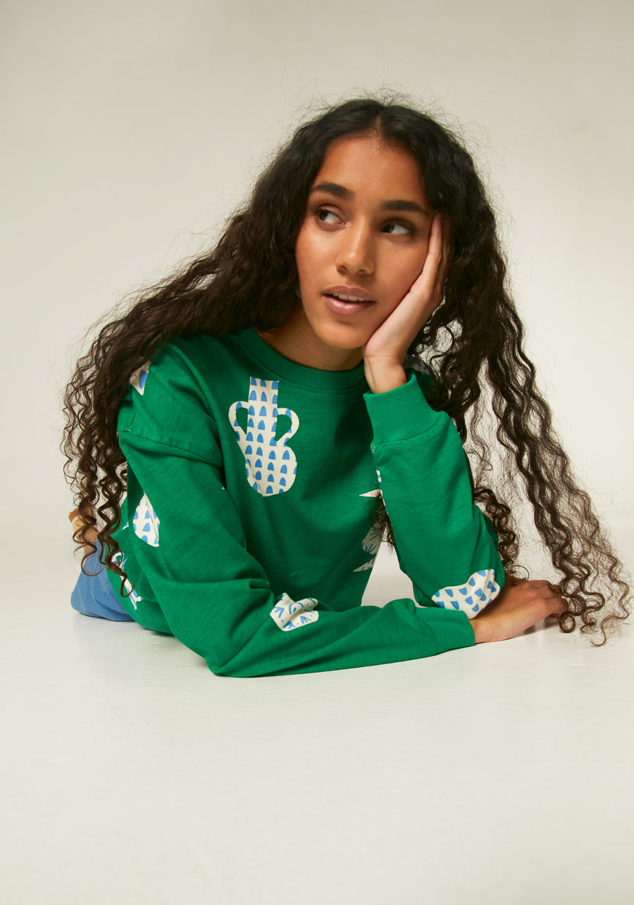 Geometric green ceramic pot print classic plush co-ord sweatshirt by Compania Fantastica