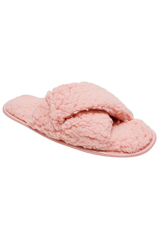 Loungeable Glamorous Soft Faux Fleece Fur Peeptoe Mule Slippers with Non-Slip Hard Sole Grey / Pink