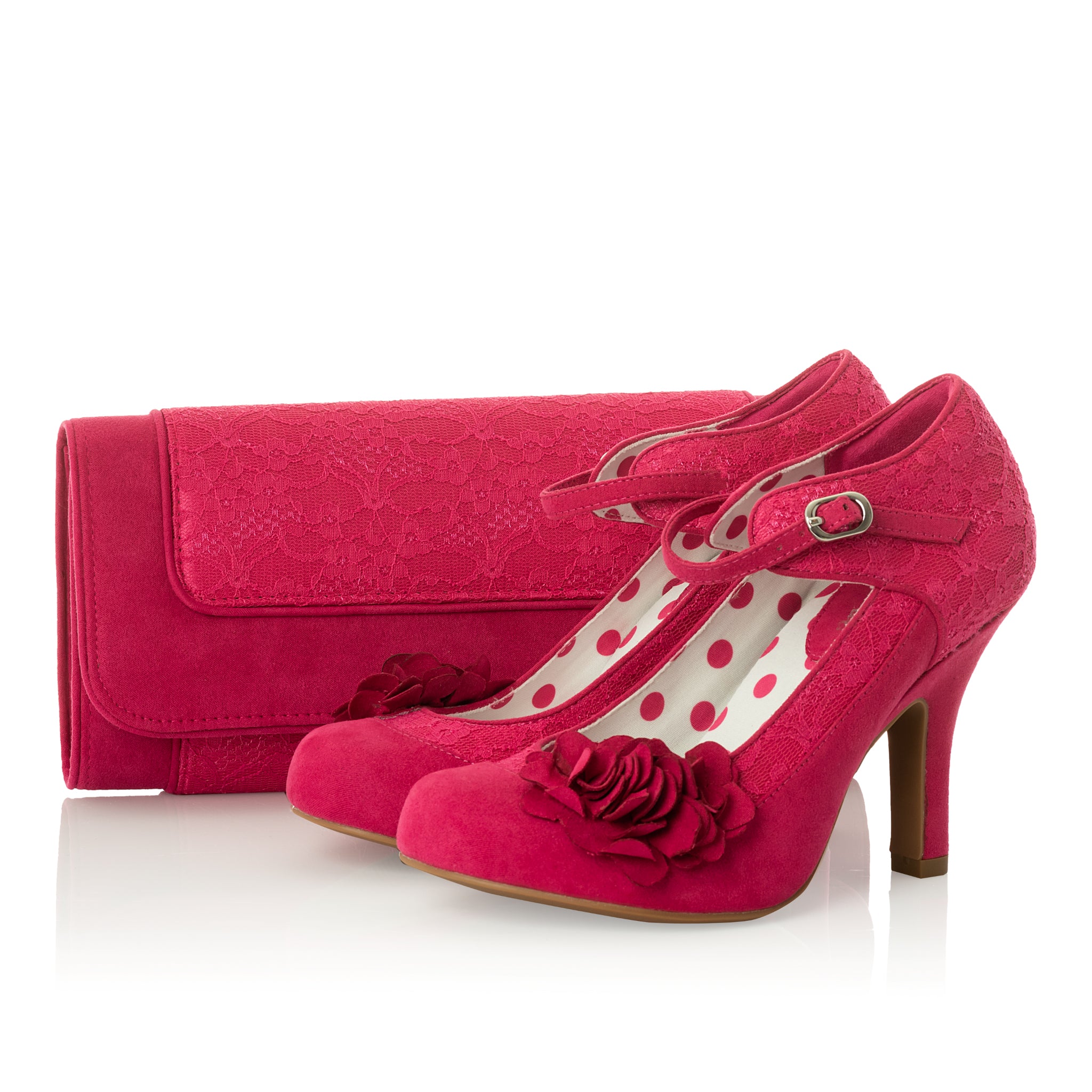Melinda Fuchsia Pink Lace Bar Shoe & Matching Tirana Bag by Ruby Shoo