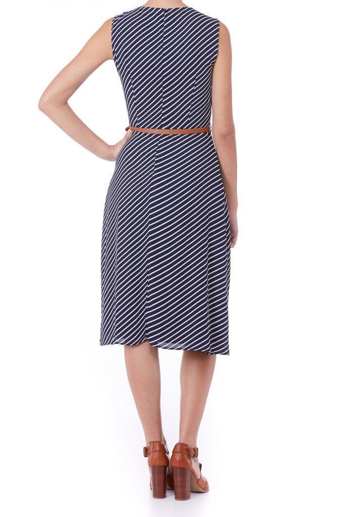 A timeless Summer dress the Sadie Dress, features a flattering fit and flare shape, a full skirt falling to the knee and a fresh diagonal stripe print. We love this dress paired with sandal and shades in the sunshine. The skinny faux leather tan belt is included.