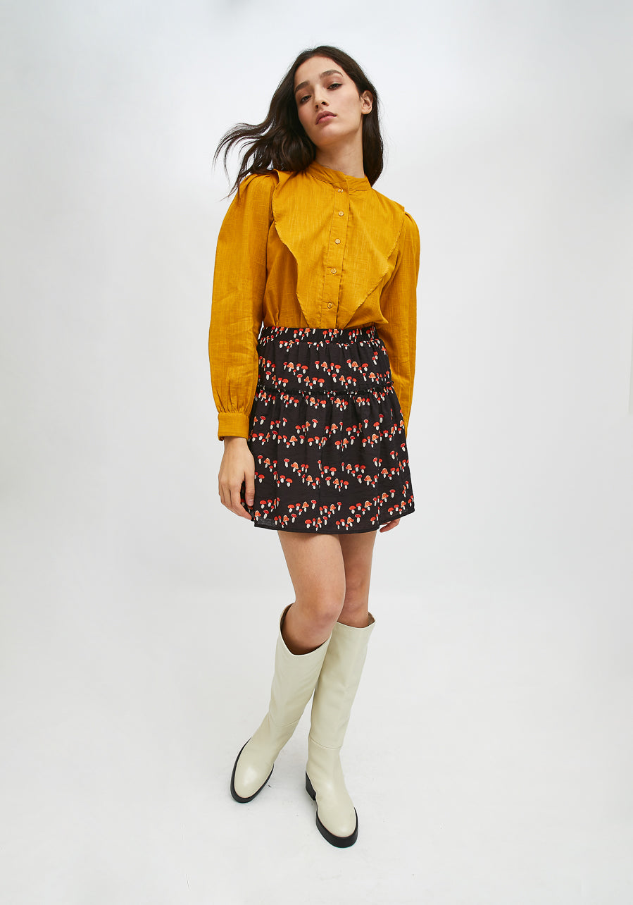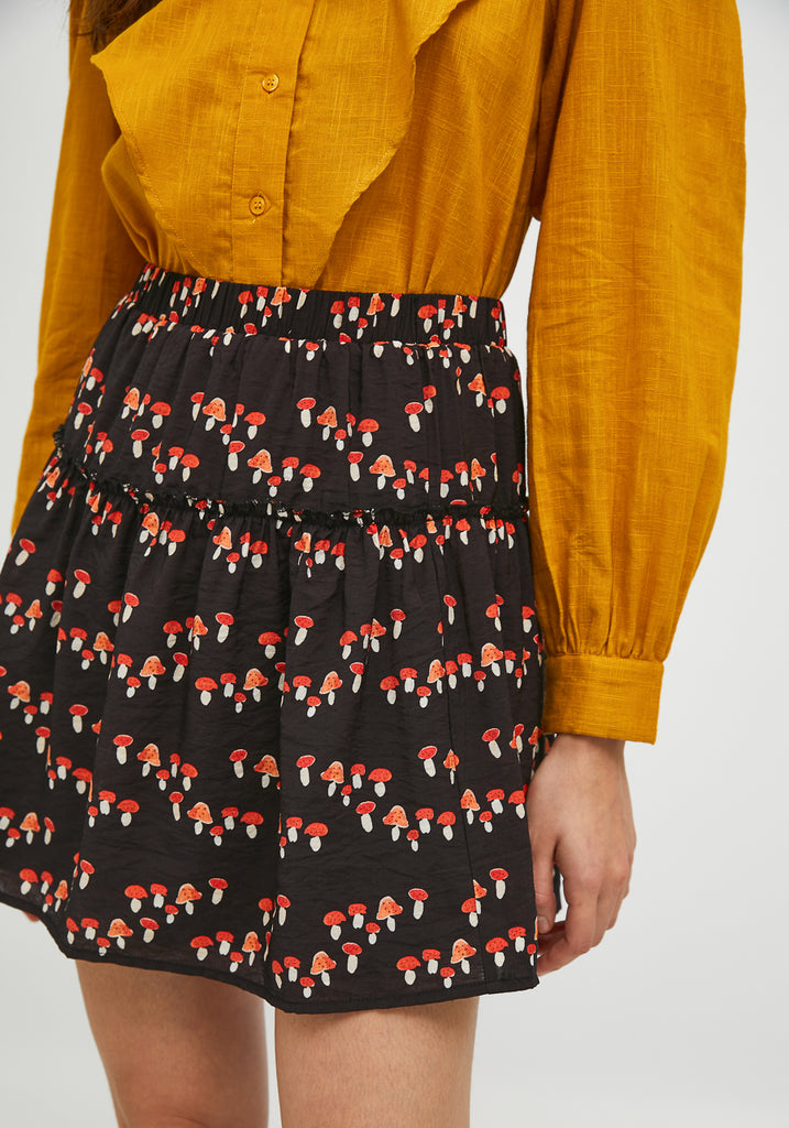 Mushroom Print Short skirt in fluid fabric with elastic waist by Compania Fantastica FA21HAN06