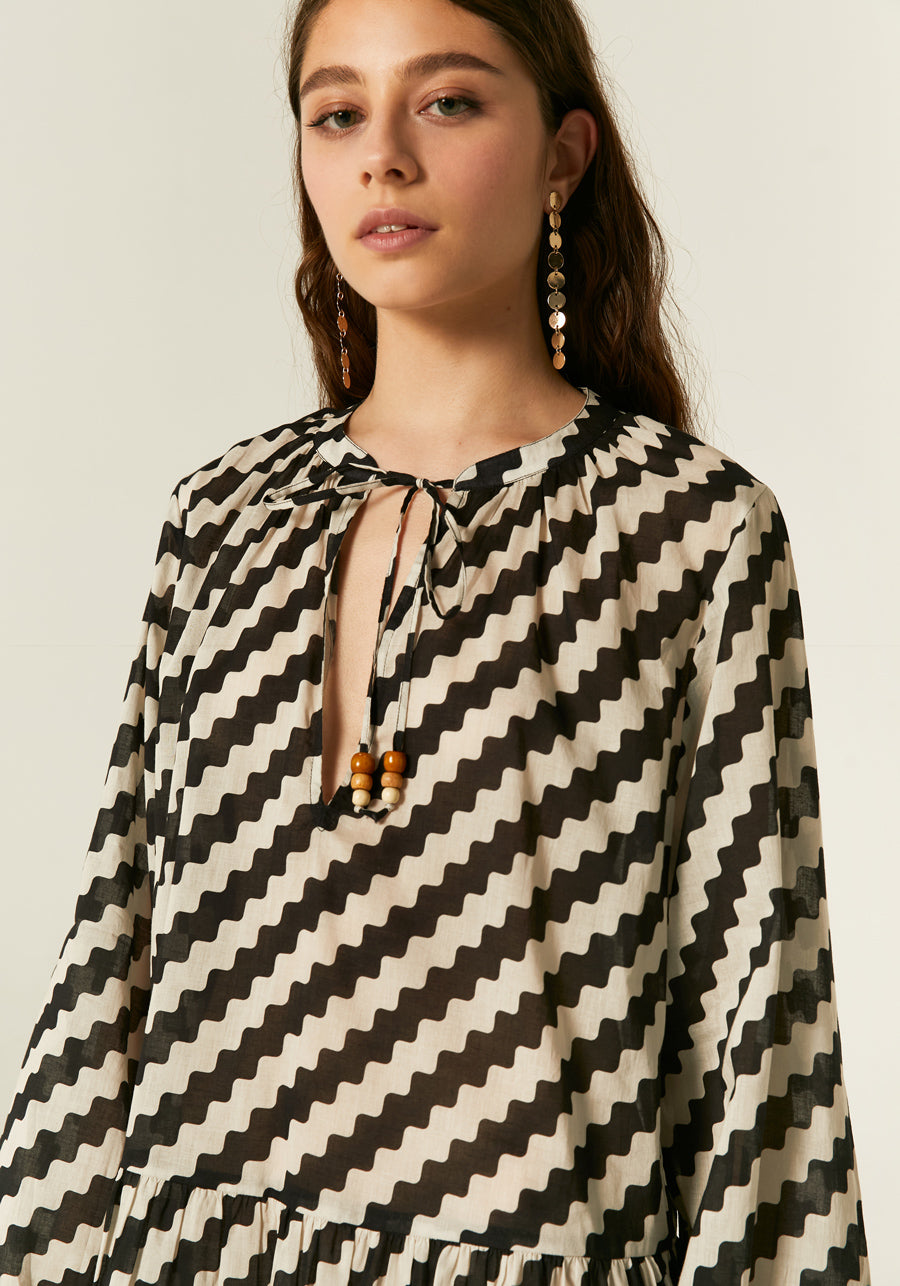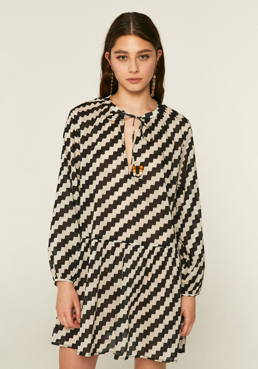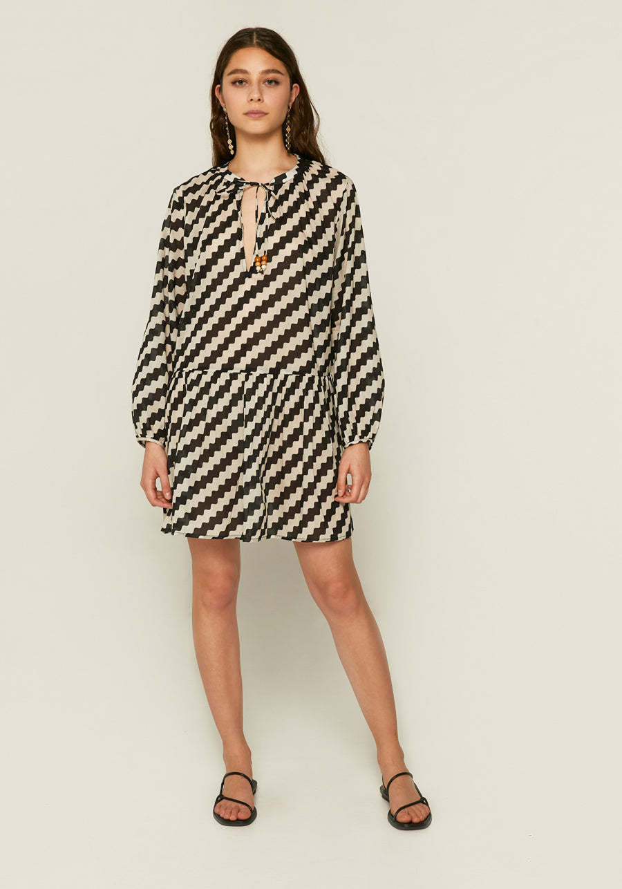 Zigzag print long‐sleeved mini dress by Compania Fantastica
